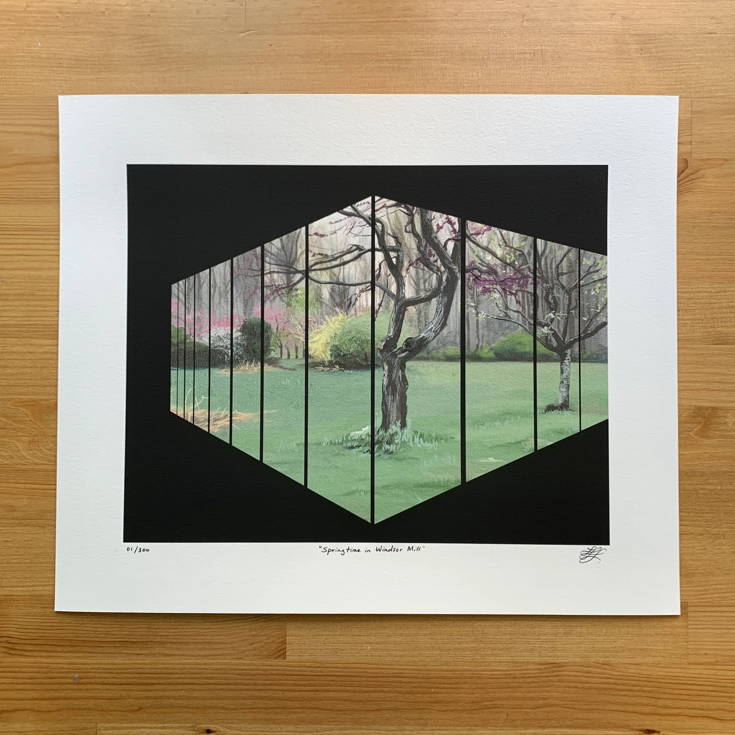These high quality prints are varnished and mounted to white sintra. No border. “Sintra” is a high-quality PVC board, which gives the piece a 1/4” thickness. These come with a sawtooth hanger on the back, but once purchased, they may be potentially framed later. These prints are signed and numbers on the back.